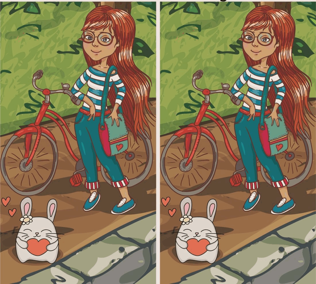 Ready for another exciting visual challenge? It’s time to test your observation skills and spot the difference between two seemingly identical images. In the challenge titled “Spot the Difference: The Girl and the Bunny,” you’ll be taken to a charming scene where a sweet girl shares a special moment with a cute bunny. As the girl prepares to ride her bike, the bunny holds a heart, conveying an atmosphere of warmth and affection.