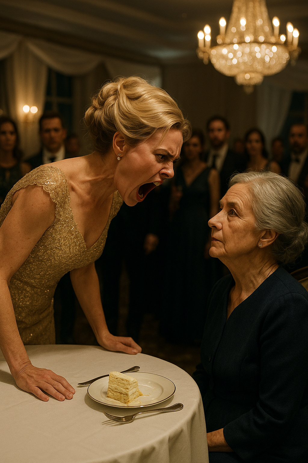 Margaret’s lips parted, but no words came. The crowd parted like a tide, leaving her standing alone under the chandelier — the queen stripped of her crown.