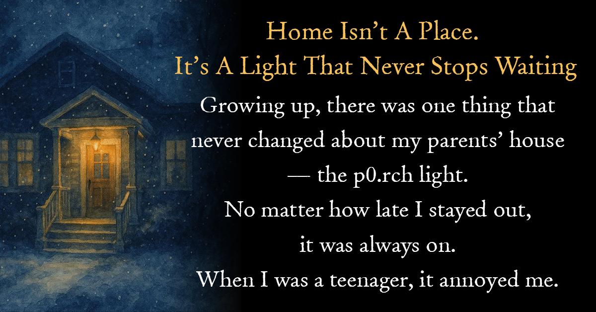 But every time I came back to visit, the p0.rch light was still there — glowing softly, even when I pulled in late at night.
