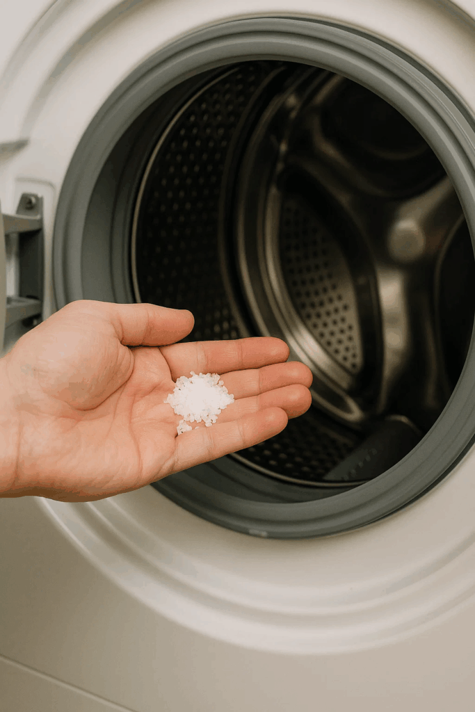 Hard water is full of minerals like calcium and magnesium that leave residue on clothing and inside your washer. Over time, this buildup can make fabrics feel stiff and even cause internal damage to the machine. Salt acts as a natural softener by binding to these minerals, preventing them from sticking to clothes and machine parts.