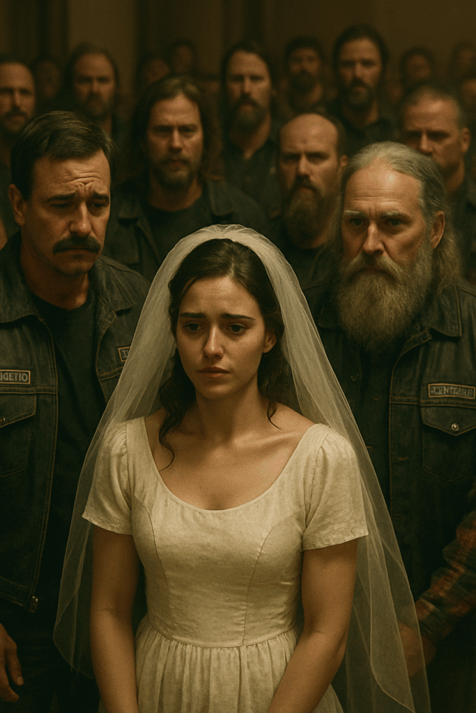 The lead biker—a huge man with silver in his beard, scars on his arms, and the kind of quiet authority that silences a crowd—removed his helmet. His name, stitched in faded thread across his vest, read MARCUS WEBB. He looked straight at me, eyes glistening. “Ma’am,” he said, voice steady, almost gentle. “We can’t let this wedding happen.”