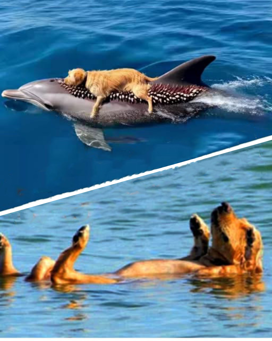 A pod of dolphins, gliding through the water, noticed the struggling dog. They swam closer, sensing his distress. With intelligence and coordination, they quickly surrounded him, their gentle clicks and whistles breaking the silence of the canal. One dolphin nudged the terrier, ensuring he stayed above the surface, while another swam underneath him, supporting him with its strong body to prevent him from sinking. It was as if they understood his fear, working together to keep him safe in the dangerous waters.