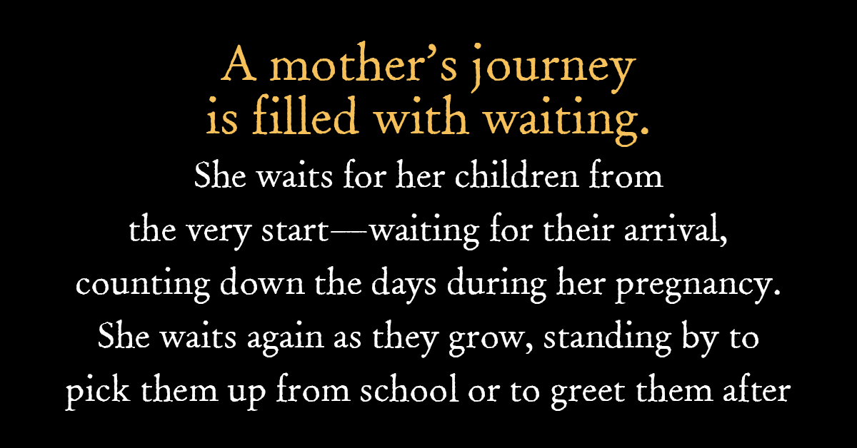 She waits for her children from the very start—waiting for their arrival, counting down the days during her pregnancy.